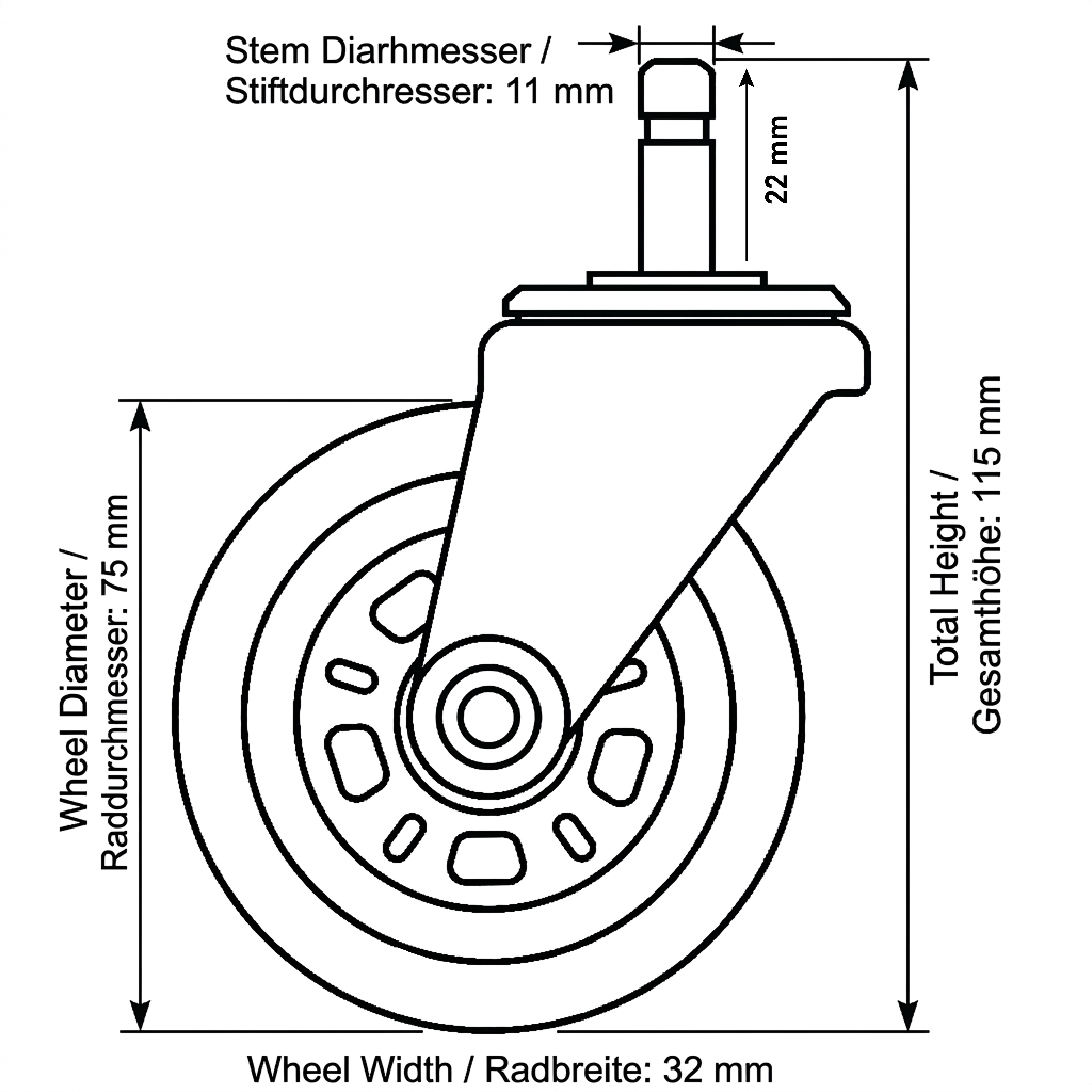 Passt auf nahezu alle Bürostühle (11-mm-Stift)